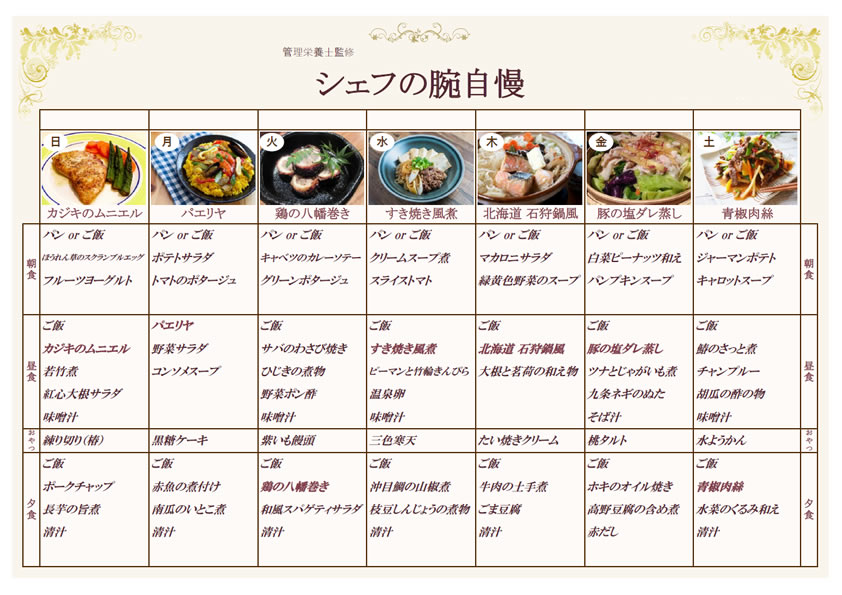 <献立表 サンプル>