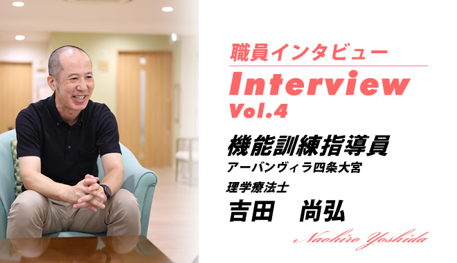 「アーバンヴィラ四条大宮」の機能訓練指導員は、老人保健施設や特別養護老人ホームなどで長く活躍してきた理学療法士です。